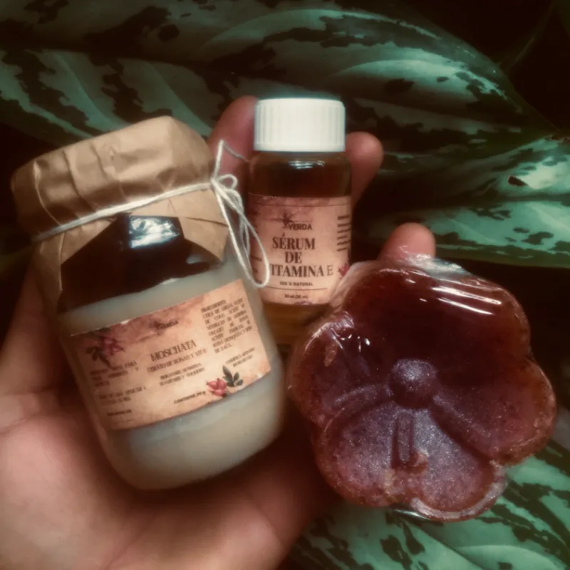 -s茅rum de vit. E, jab贸n hidratante y cerato de rosas-