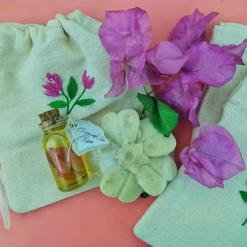 Oleato de bugambilia y después del sol, en bolsita de lienzo con bordado de @atetu_borda Gracias a sus propiedades antisépticas, la bugambilia ayuda a combatir la descamación, infecciones y el acné. Fortalece el cabello y evita que se quiebre. Es muy aconsejable utilizarla en heridas superficiales porque acelera la cicatrización. El Después del sol tiene gran poder regenerador, calmante y refrescante, que ayudará a calmar e hidratar tu piel tras la exposición al sol. Hidratante, curativa, reparadora, regeneradora, y calmante. Cúrate la piel con flores 💐