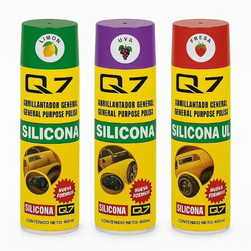 Silicona de aromas (limón, uva y fresa) para dar brillo y protección. Uso para plásticos de autos y motos.