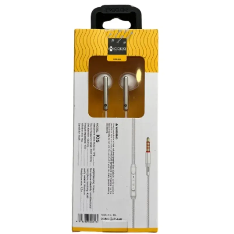 MODELO:K15TIPO:Audífonos manos libres con cableCONEXIÓN:Cable de 3.5mm de oroMICRÓFONO:Integrado en el cable para manos libresALAMBRE:Redondo, 1.2 metros, material TPUCOMPATIBILIDAD:Smartphones, tabletas, computadoras, dispositivos con entrada de 3.5mm....