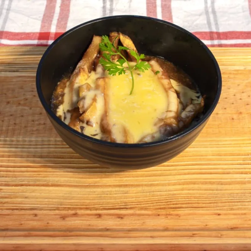 Poutine: papas crujientes, queso fundido y salsa gravy intensa, un clásico rebelde lleno de sabor.