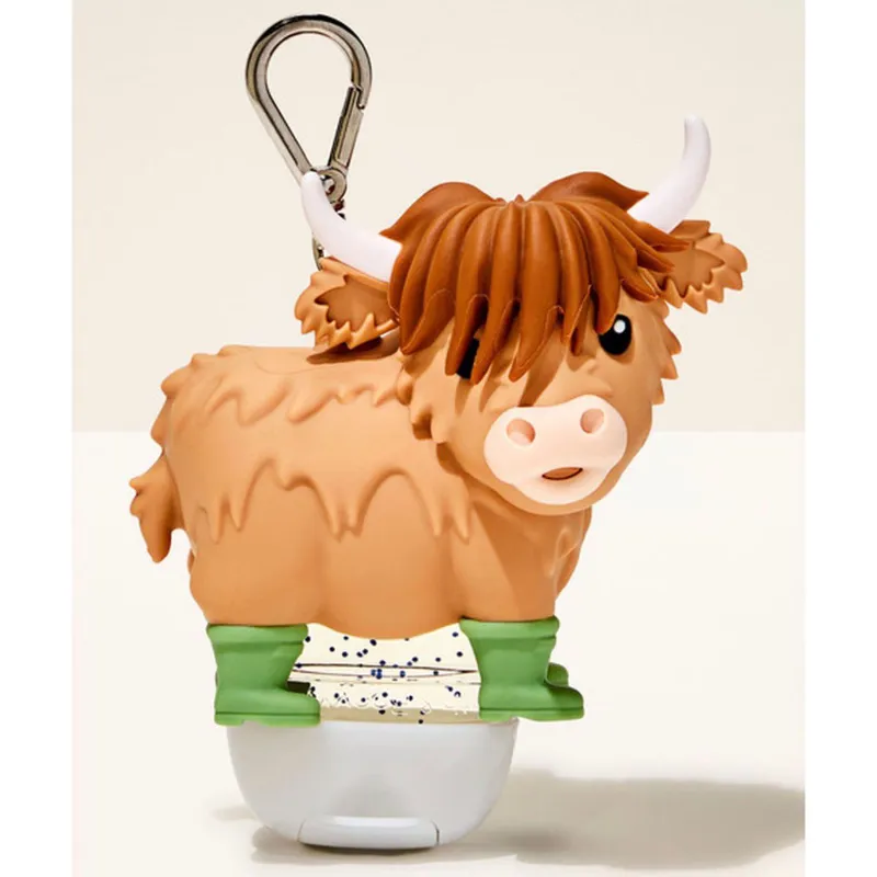 Divertido holder en forma de vaquita con botas. Ideal para colgar en bolso, mochila o llaves y llevar tu antibacterial de forma práctica y original.