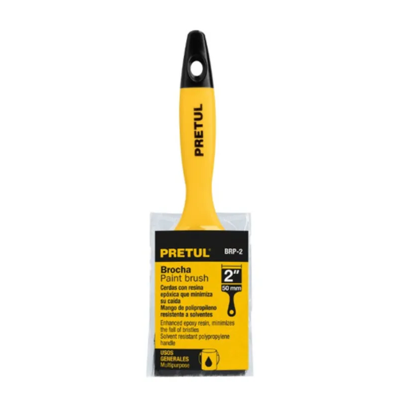 Resistente a impacto, de pelo blanco natural y mango de plástico esta brocha es ideal para pinturas a base de aceite.