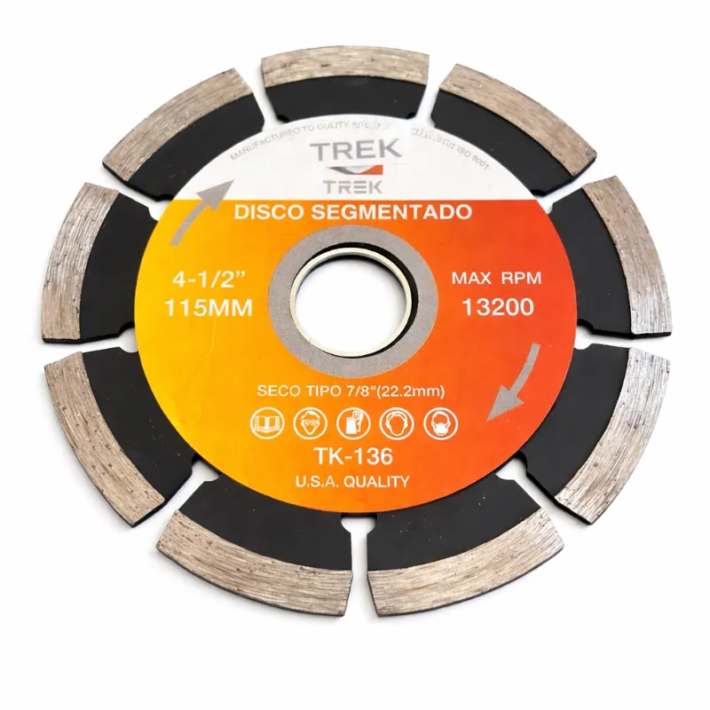El disco diamantado segmentado se elige generalmente para aplicaciones en hormigón, ladrillo, bloques de mampostería y hormigón armado. Se obtiene un corte rápido y áspero sin complicaciones.