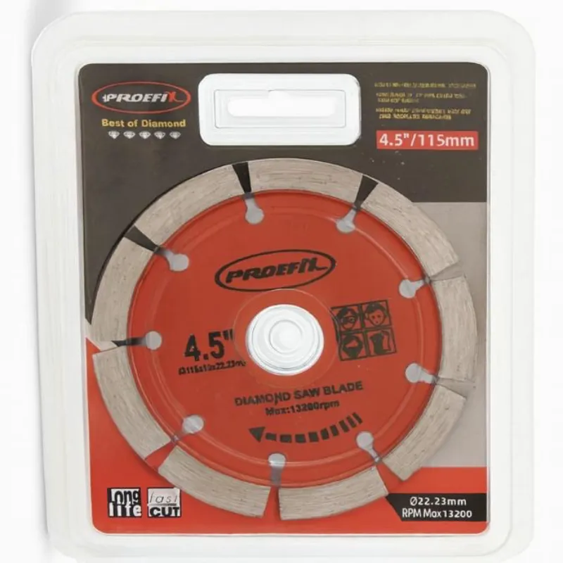El disco diamantado segmentado se elige generalmente para aplicaciones en hormigón, ladrillo, bloques de mampostería y hormigón armado. Se obtiene un corte rápido y áspero sin complicaciones.