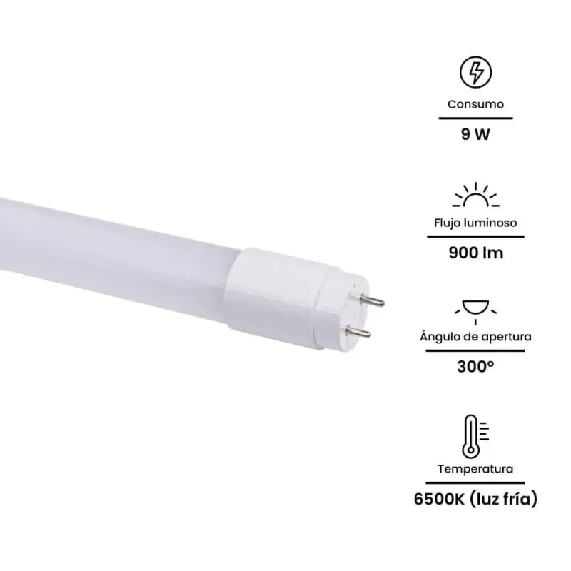 · Potencia: 9W (equivalente a un tubo convencional de mayor consumo).