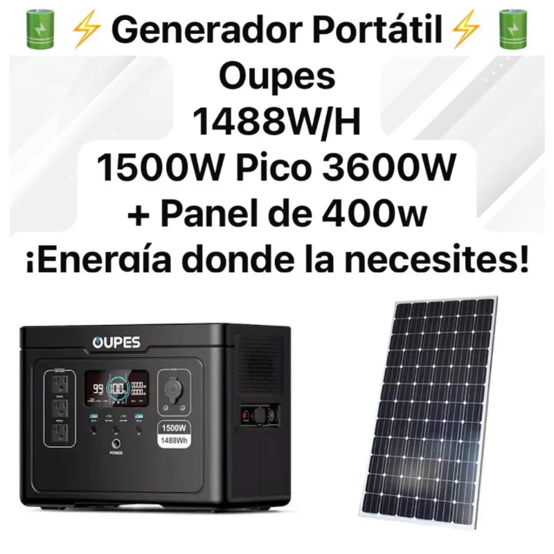 Estación de Energía OUPES + PANEL ✅ Capacidad 1488 WH ✅ 1500W PICO 3600W ✅ Panel Solar 400 W