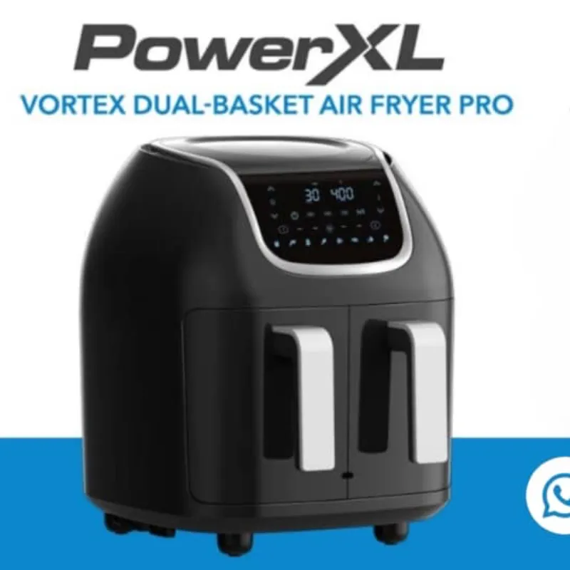 Freidora de Aire 9L PowerXL Vortex Freidora de aire de doble cesta de 9 cuartos de galón, freidora eléctrica 7 en 1 de 2 cestas o 1 cesta de capacidad extragrande, tecnología SmartSync, para comidas familiares enteras XL, recordatorio de batido (9 cuartos de galón, negro) Transporte Incluído🚛 Garantía 1 Mes👌🏻 Factura 📝
