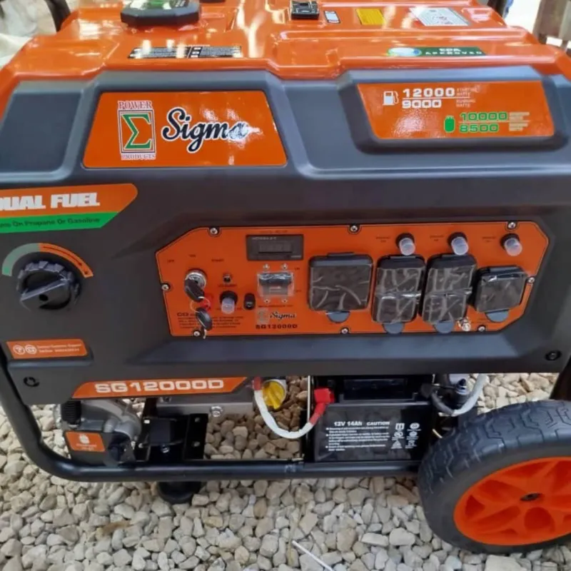🟠 Planta Eléctrica Sigma 12000 W🟠 🔸12,000 Watts de Arranque / 9,000 Watts de Operación 🔸 Dual Fuel (Gasolina y Gas Propano) 🔸Motor OHV de 457 CC 🔸Tanque de 6.6 galones con hasta 13 horas de funcionamiento al 50% de carga 🔸Encendido eléctrico y de retroceso para mayor practicidad 🔸Sensor de monóxido de carbono (CO Alert) 🔸Ruedas de 10” y Manijas Incluidas para transporte fácil 🟠 Toma de Fuerza Incluída 50ah 110/220 V, 30 ah y 20 ah. Transporte Incluído🚛 Garantía 1 Mes👌🏻