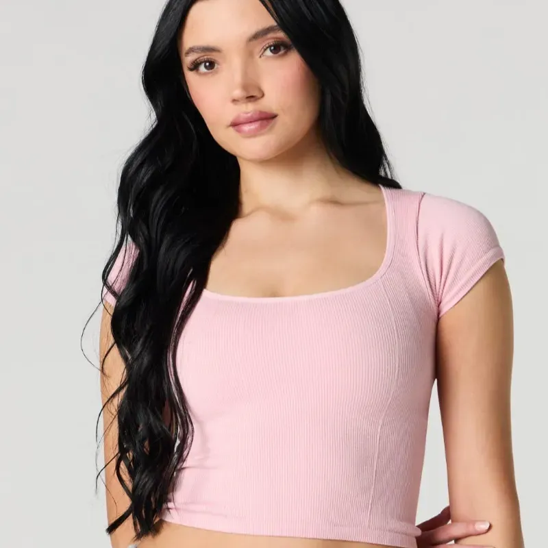Pulover corto básico rosa
