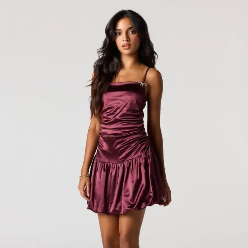 Vestido bombache rojo vino
