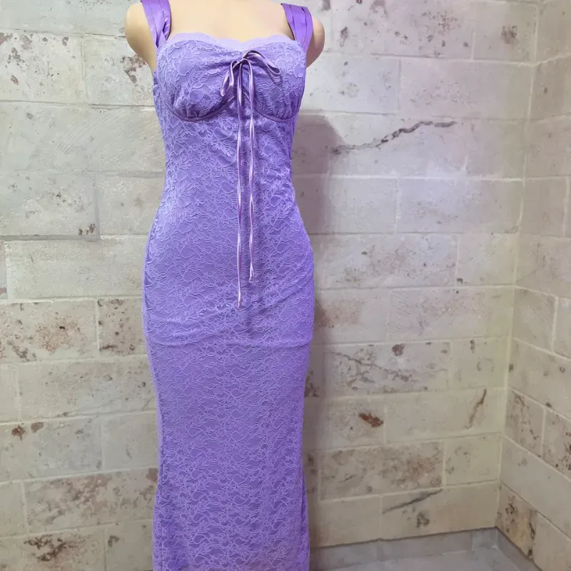 Vestido lila largo de encaje