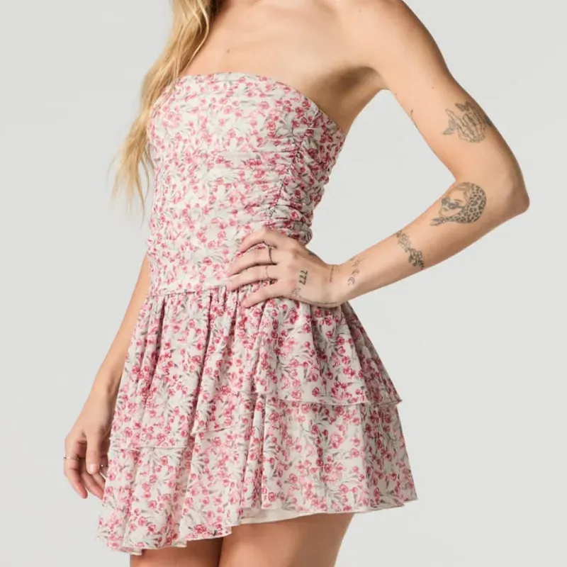 Vestido rosa estampado strapless