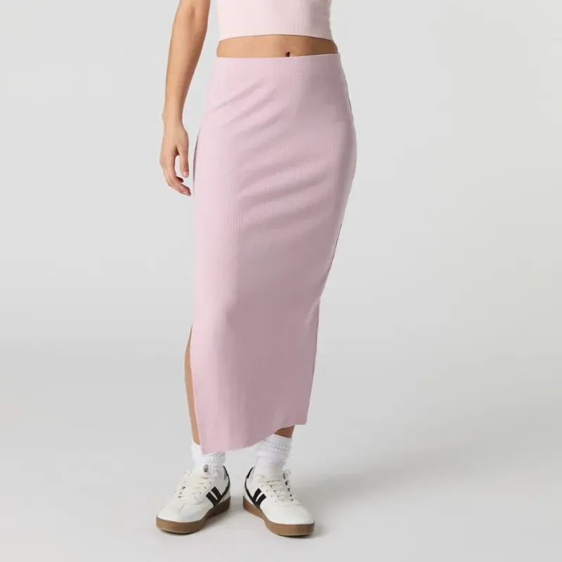 Saya rosada roja con abertura en la pierna