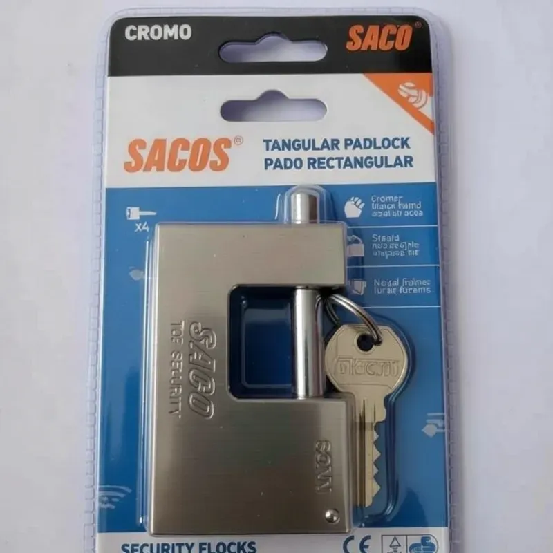 Candado rectangular 80 mm,cromado con terminación de niquel para mayor fuerza y durabilidad