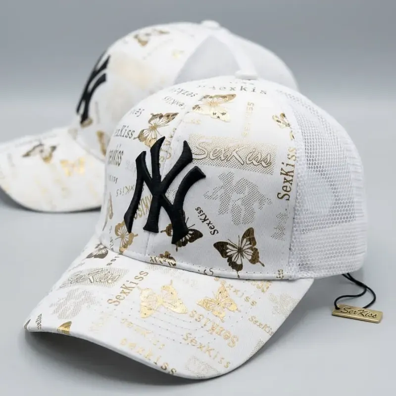 Gorra blanca con el logo de los New York Yankees, adornos frente