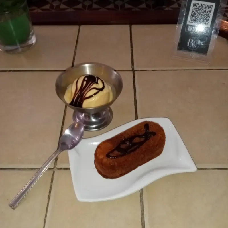 Una bola de Helado Nestlé con torta de chocolate
