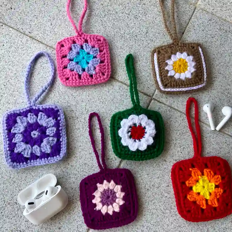 Pequeño, práctico y lleno de color. Este accesorio tejido a crochet es perfecto para guardar y proteger tus audífonos, evitando que se enreden o se pierdan dentro de tu bolso.