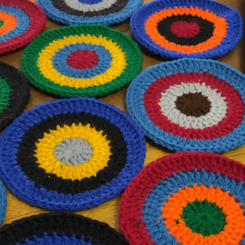 Coloridos portavasos tejidos a crochet que aportan alegría y un toque único a tu mesa.