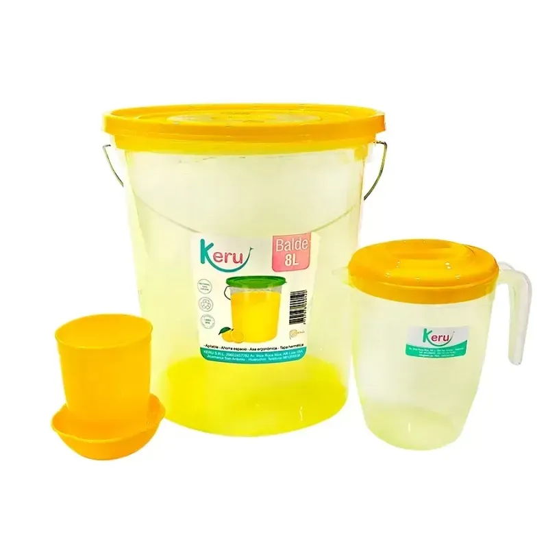 Set de balde de 8lts, jarra de 1lt, 4 vasos y dulcera