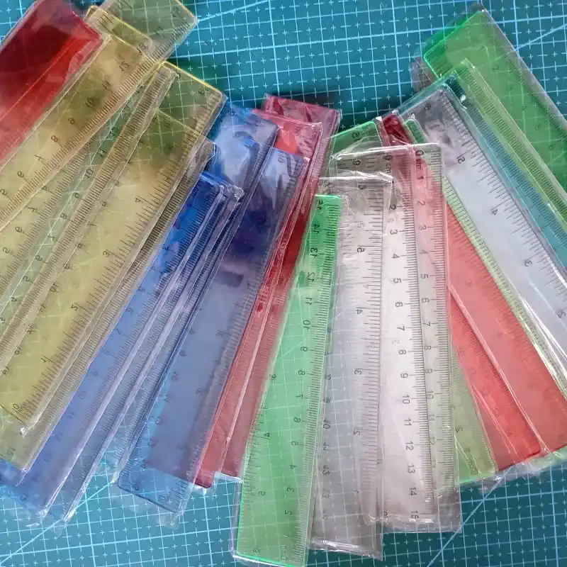 Regla plástica pequeña de 15 cm. Disponible en varios colores