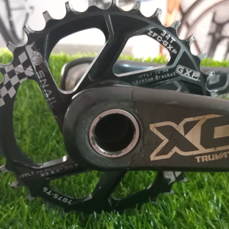 Bielas de MTB SRAM Truvativ X0, de carbón, brazos de 175mm de largo, eje GXP, monoplato 34T, muy ligeras, detalles estéticos solo mayormente en el cover de protección, solo x 110 USD