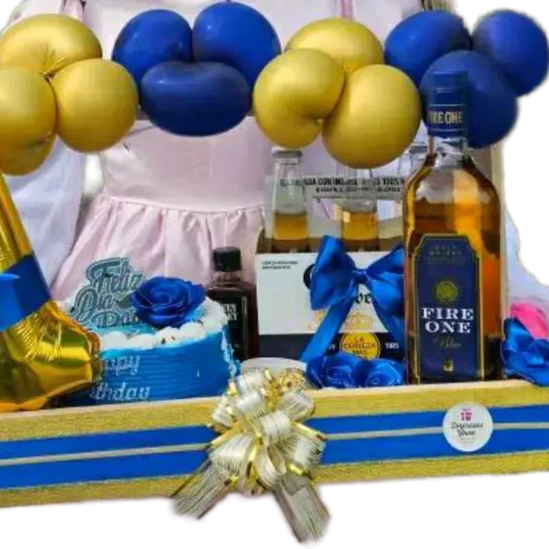 Patel de cumpleaños ,6 cervezas corona,una botella de wiskey ,arreglo de globos .
