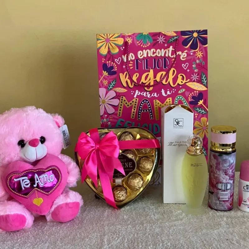 Peluche, caja de bombones,perfume ,colonia ,desodorante y jabita de regalo 🎁