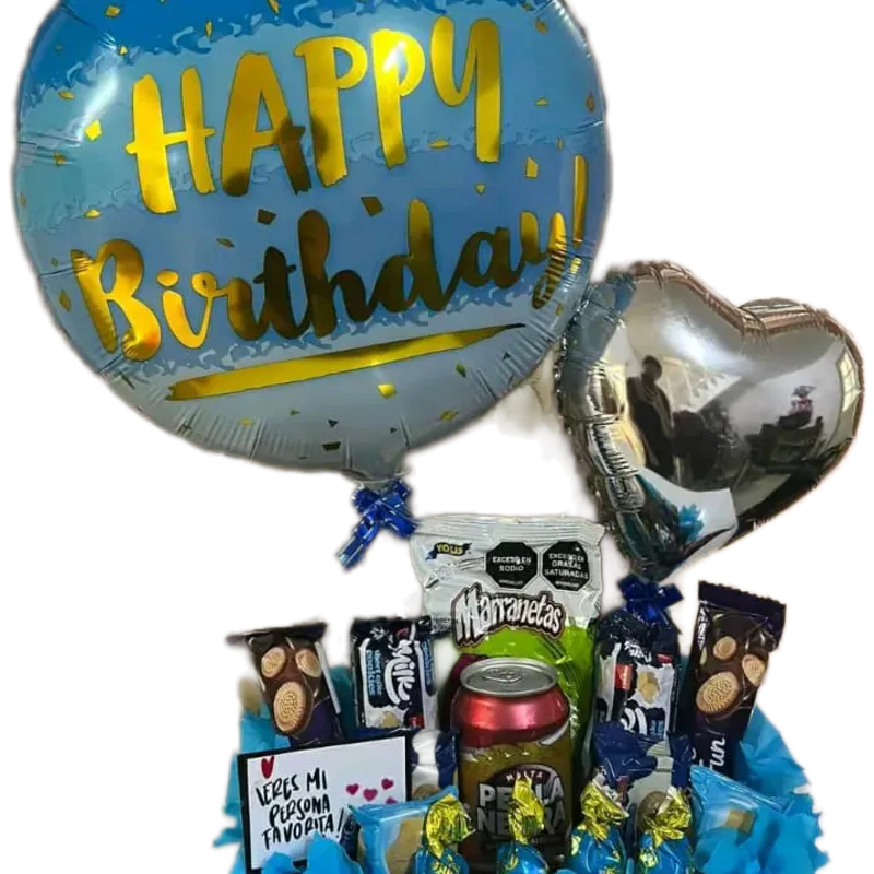Caja con variedadesde confituras y adornos en globos 🥰