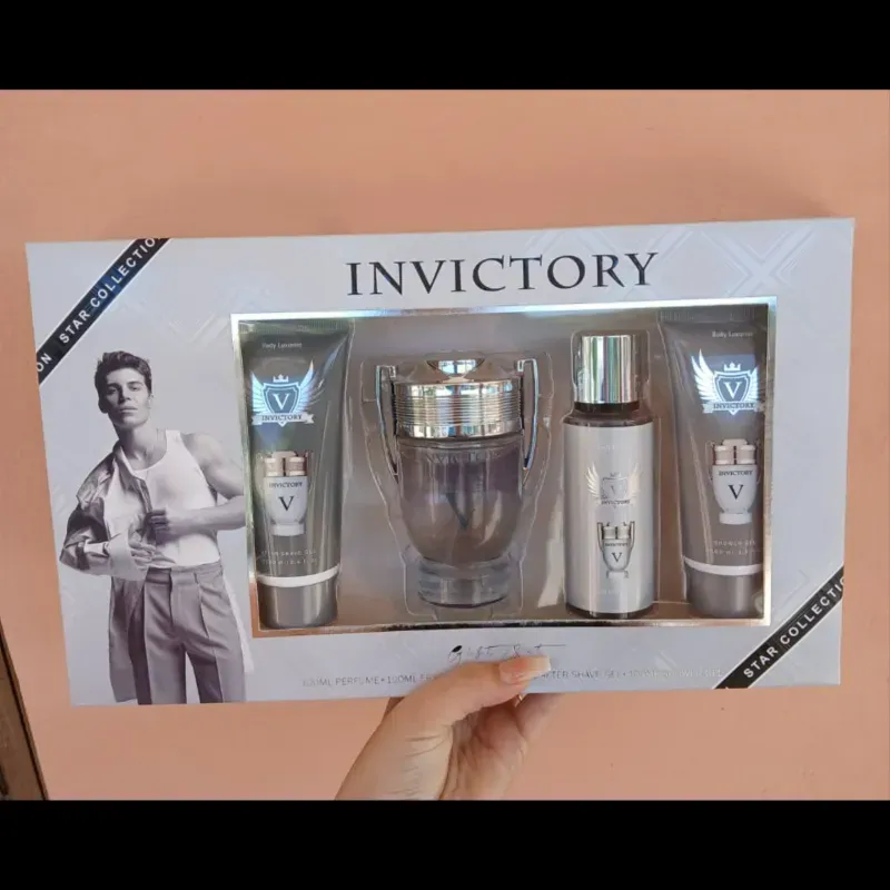 Contiene un perfume ,colonia, gel de baño y crema para la piel .