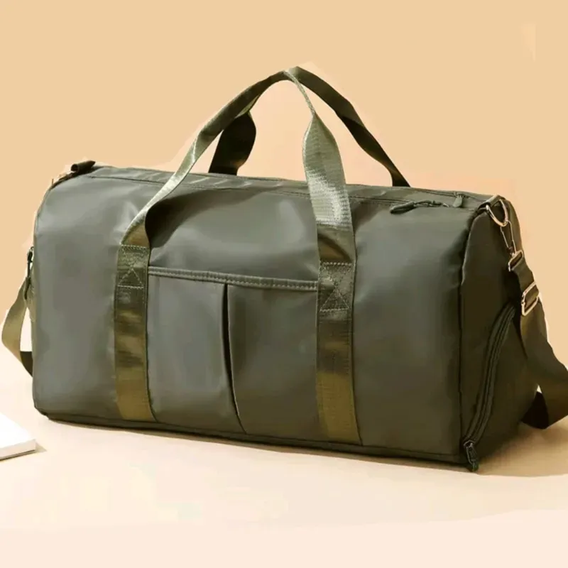 Bolsos deportivos de gran capacidad (50 cm de largo) con varios compartimentos que permiten tener tus accesorios diarios listos y bien acomodados. Departamento principal grande, tiene un bolsillo aislado impermeable que para guardar los accesorios húmedos sin riesgo a que se contamine todo el contenido. Bolsillo para tener en aislamiento los zapatos.