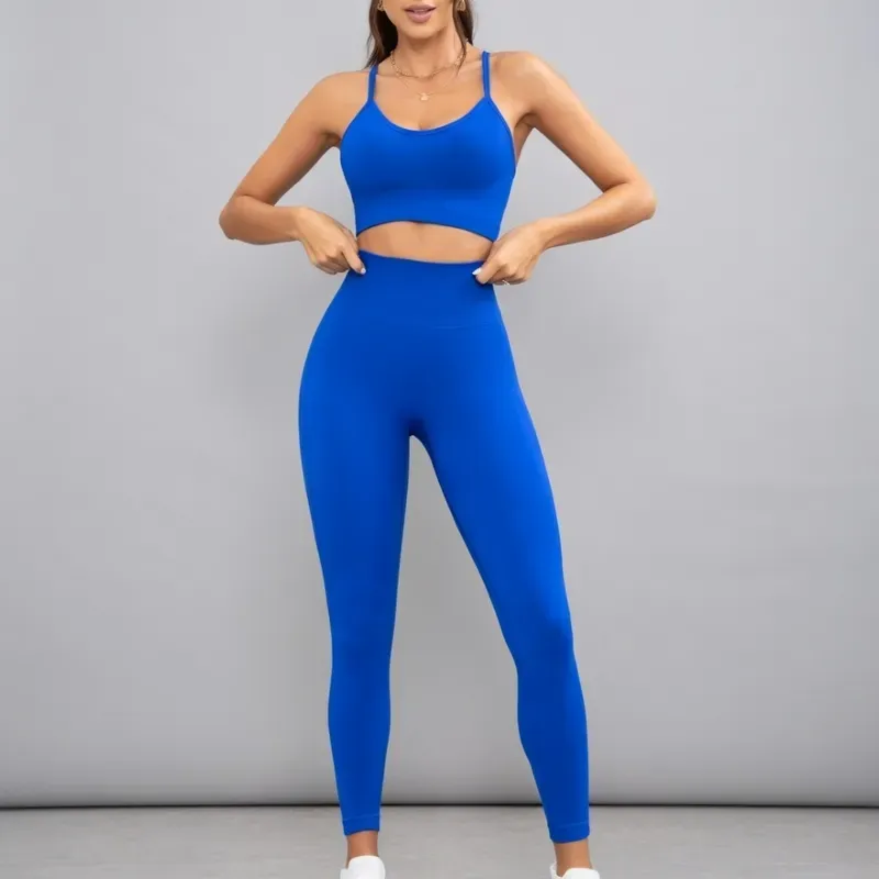 Conjunto deportivo de dos piezas con leggins de control de abdomen, tela firme y moldeadora, con efecto levanta glúteos, elastizada y sin transparencias. Tops ajustado que se moldea a tu cuerpo con almohadillas extraíbles. Tela moldeadora.