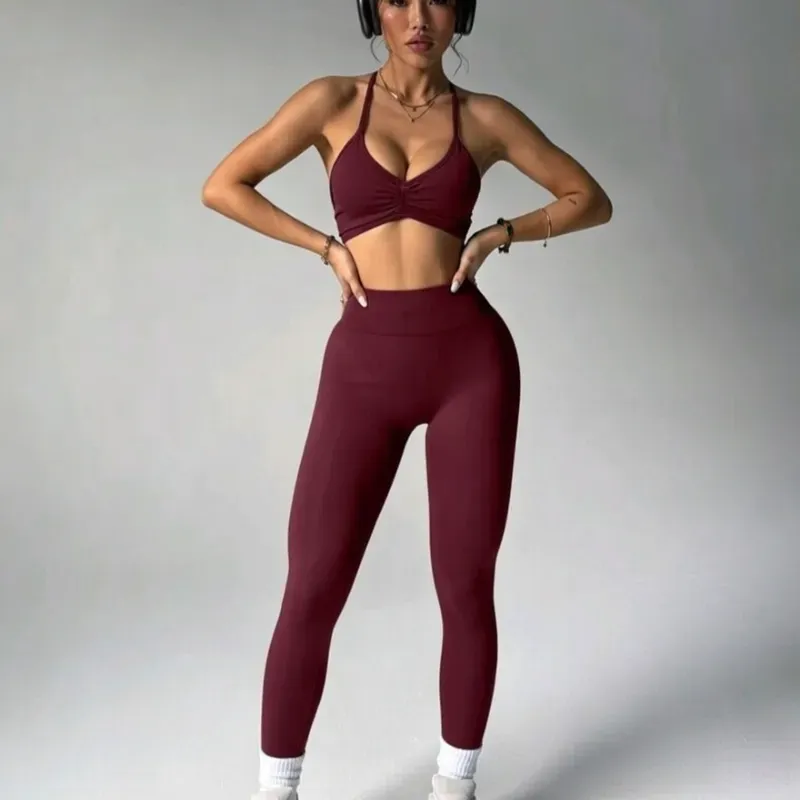 Conjunto deportivo de dos piezas con leggins de control de abdomen, tela firme y moldeadora, con efecto levanta glúteos, elastizada y sin transparencias. Tops ajustado que se moldea a tu cuerpo. Tela bien firme y reductora.