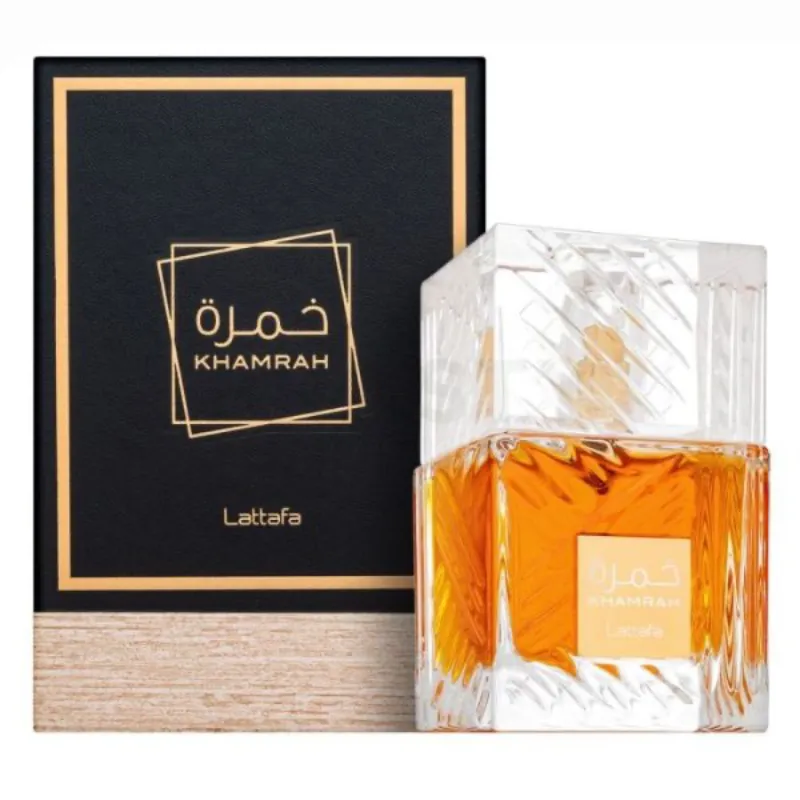 Lattafa Khamrah es una fragancia opulenta con notas de ámbar, madera y especias. Su aroma rico y cálido es perfecto para una presencia elegante y distintiva.