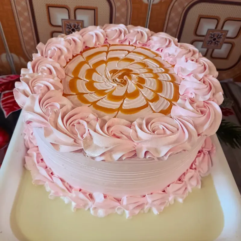 con doble relleno dé crema de mantequilla y dulce de leche y mojadita con su mezcla tres leches