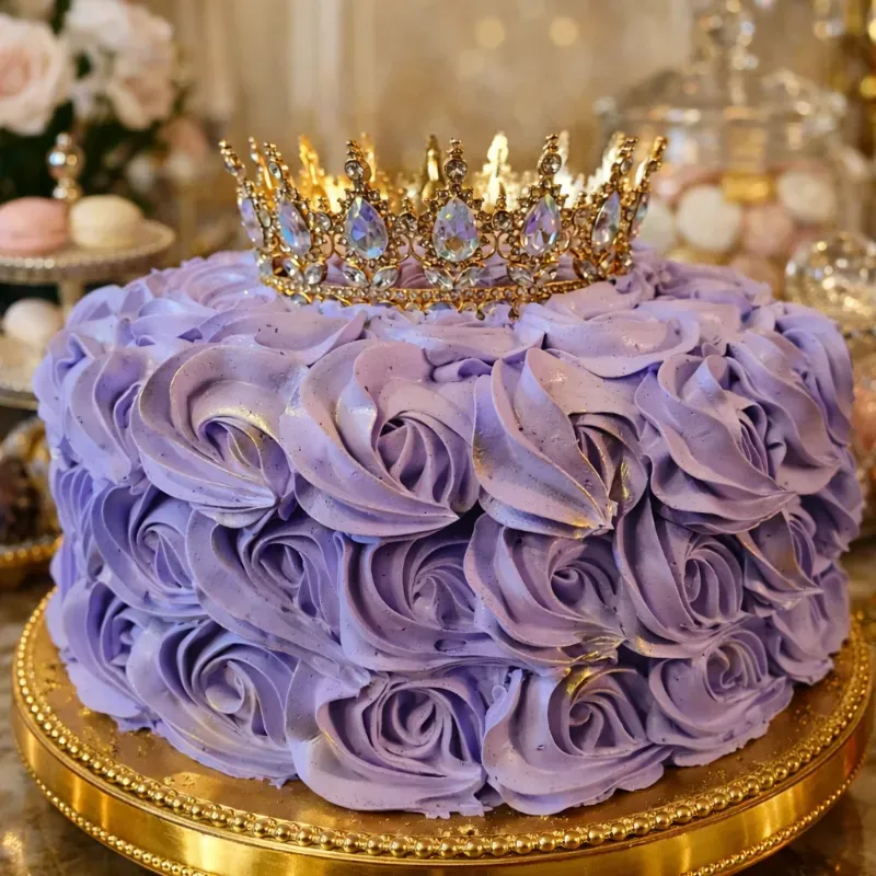 Cake cubierto de rosas y con alquiler de corona