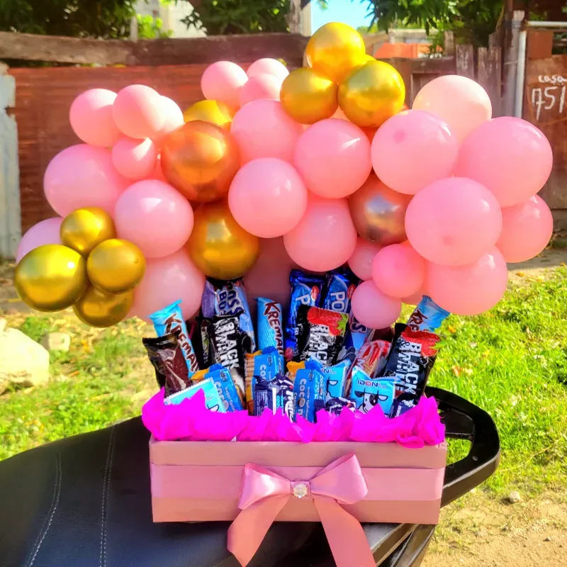 Regalo sorpresa con confituras🍬🍫 y globos 🎈