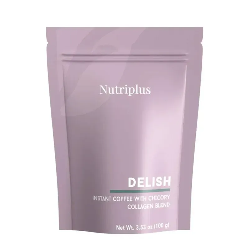 Nutriplus Delish Café con Achicoria y Colágeno es una mezcla soluble de origen indio que combina extracto de raíz de achicoria (51 %), café instantáneo (34 %) y colágeno hidrolizado tipo I y III de origen bovino (15 %). Con menos cafeína que el café tradicional, esta bebida ofrece un sabor suave, tostado y ligeramente amaderado, con sutiles notas a nuez que la convierten en una opción ideal para disfrutar caliente o fría, en cualquier momento del día. Para quienes desean reducir su consumo de cafeína sin renunciar al sabor del café, y buscan incorporar colágeno hidrolizado tipo I y III en su rutina diaria de forma práctica y reconfortante