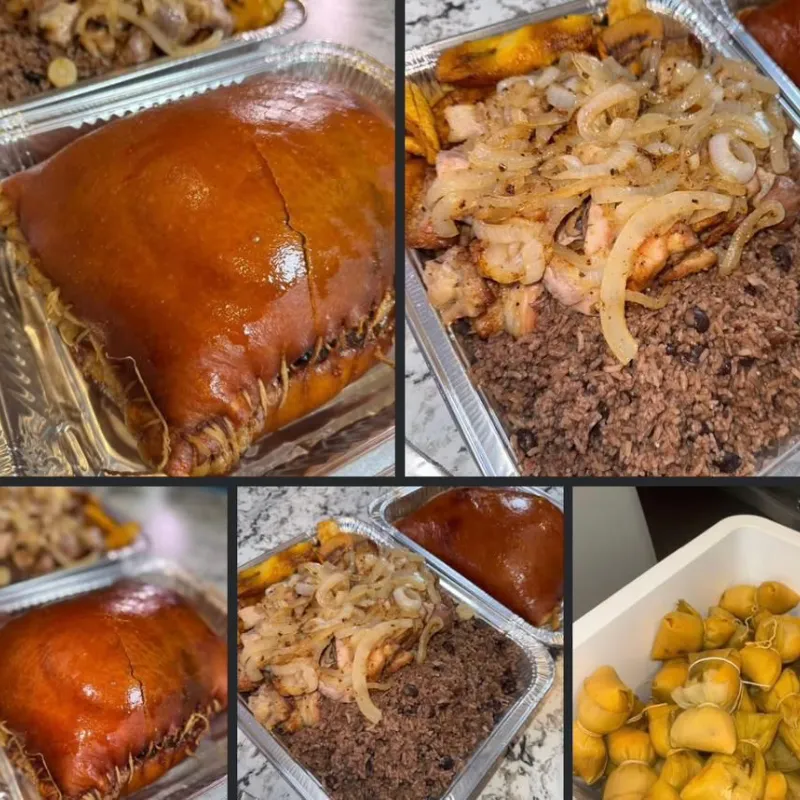 Lomo ,paleta o pierna de 15 lb con congris,vianda con mojo ,ensalada mixta ,y