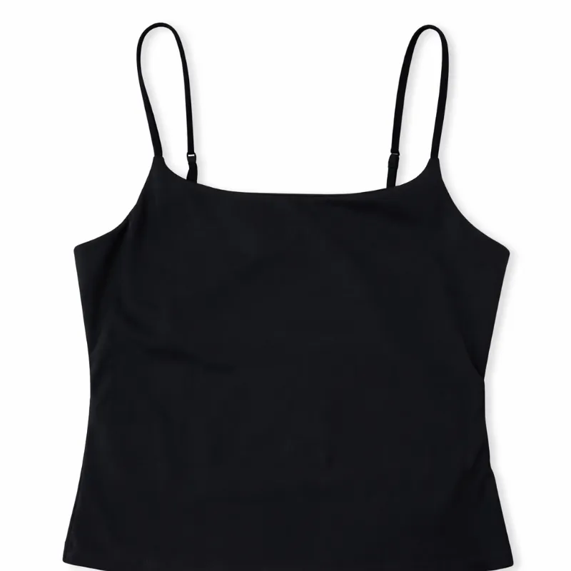 Top básico negro con tirantes finos ajustables. Minimalista, cómodo y esencial para combinar con todo