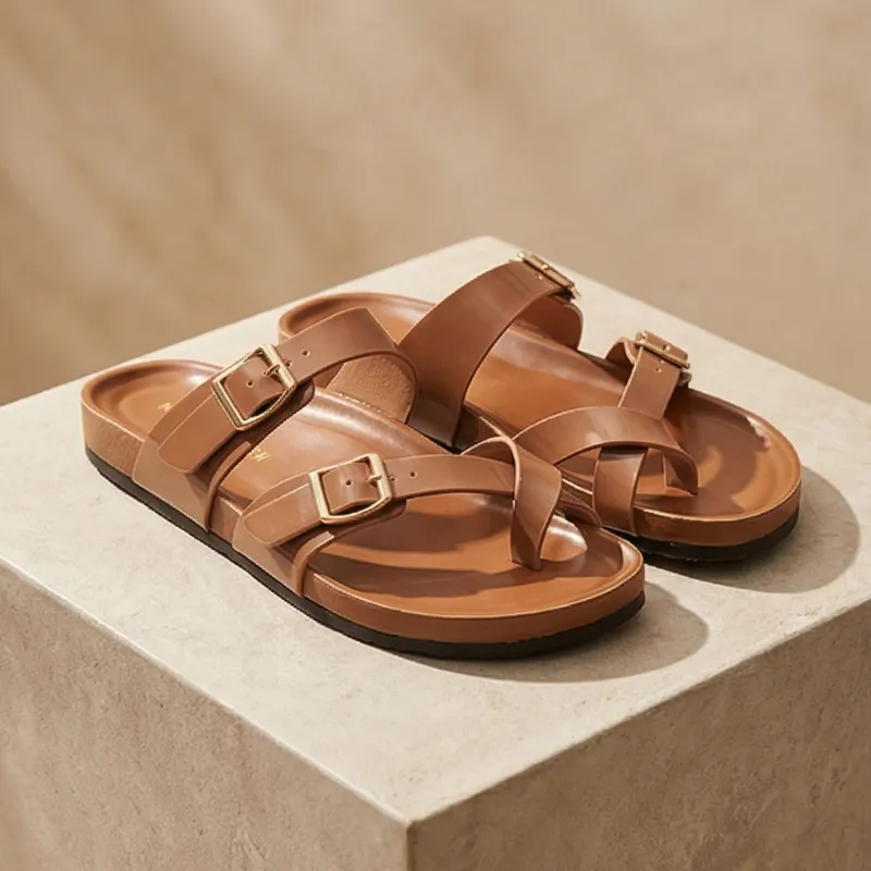 Sandalias marrones con hebillas, cómodas y versátiles para el día a día
