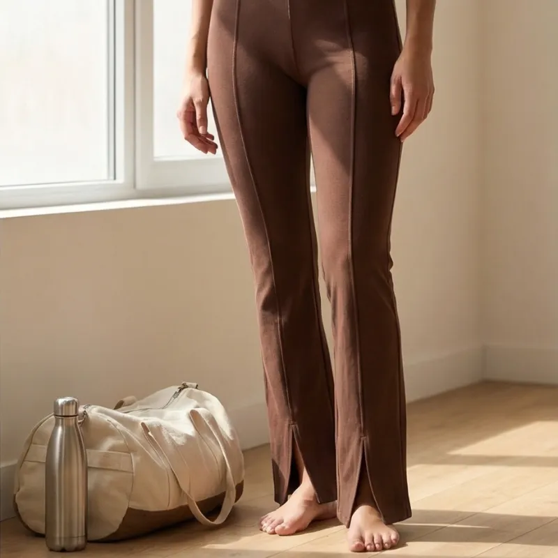 Leggings acampanados en tono marrón. Súper cómodos y perfectos para yoga o outfits relajados.