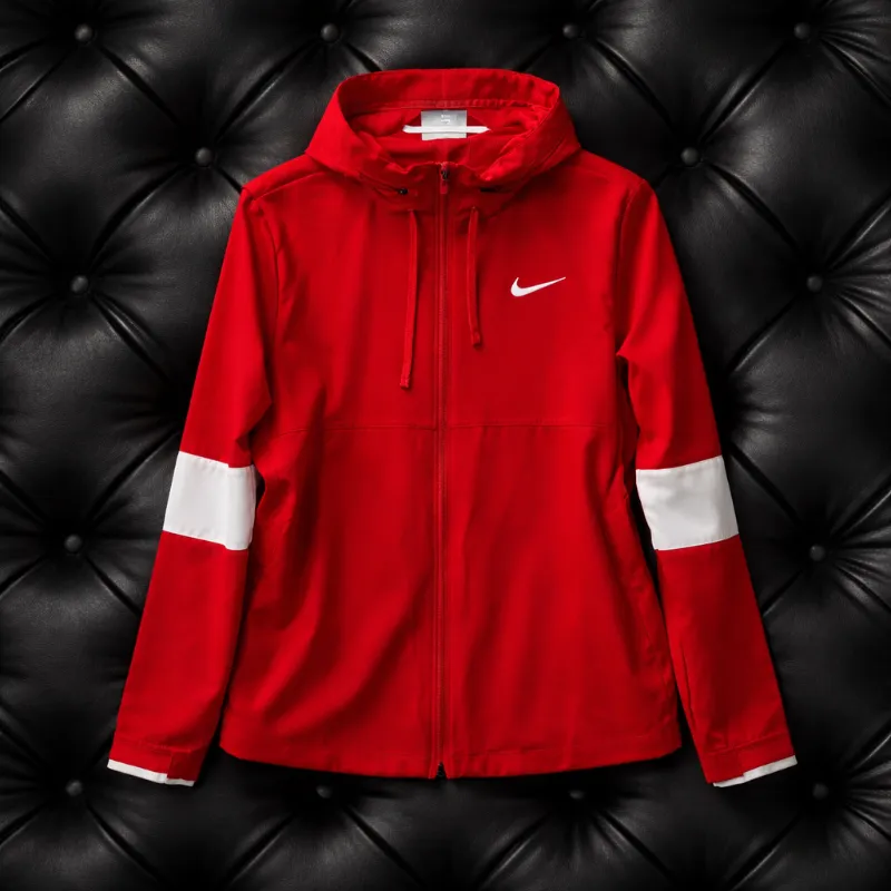 Hoodie rojo deportivo con detalles en blanco, estilo moderno y llamativo. Perfecto para outfits activos.