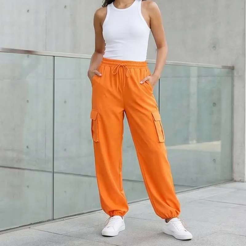 Pantalón cargo en tono naranja vibrante, diseño cómodo con bolsillos laterales que aportan un estilo urbano y moderno. Perfecto para looks llamativos y casuales.