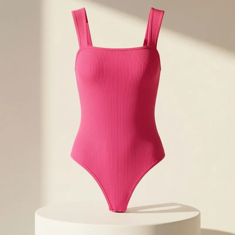 Body ajustado en color rosado vibrante con escote cuadrado. Femenino, llamativo y perfecto para outfits casuales o de salida.