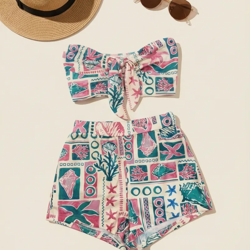 Conjunto corto con estampado tropical. Perfecto para un look fresco y juvenil