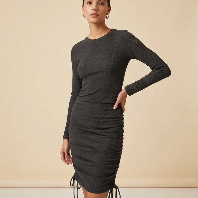Vestido ajustado con diseño clásico y detalle lateral. Perfecto para looks elegantes y versátiles.