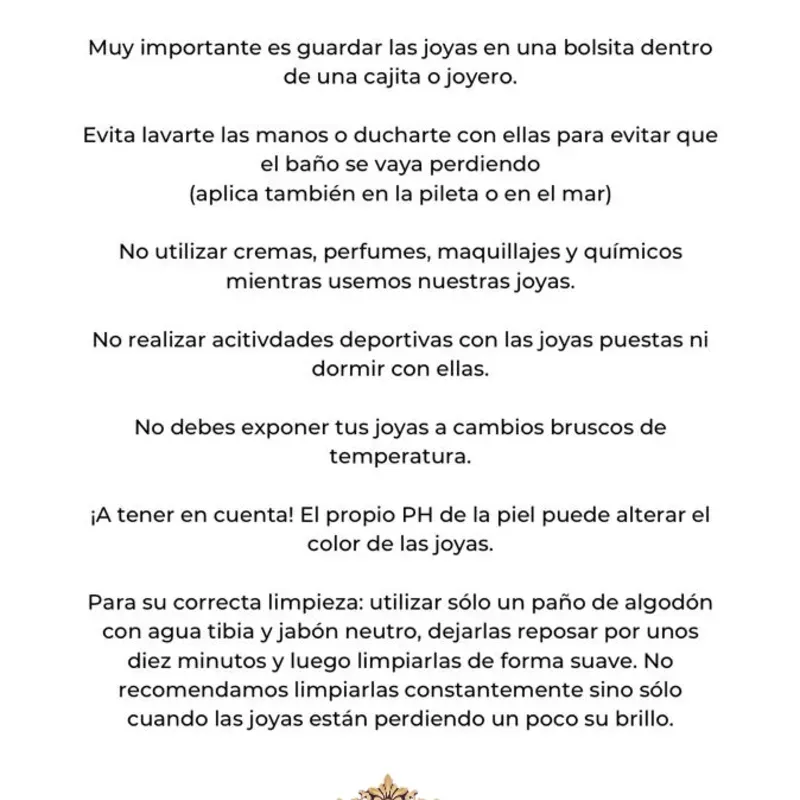 Sobre Oro laminado y sus cuidados.
