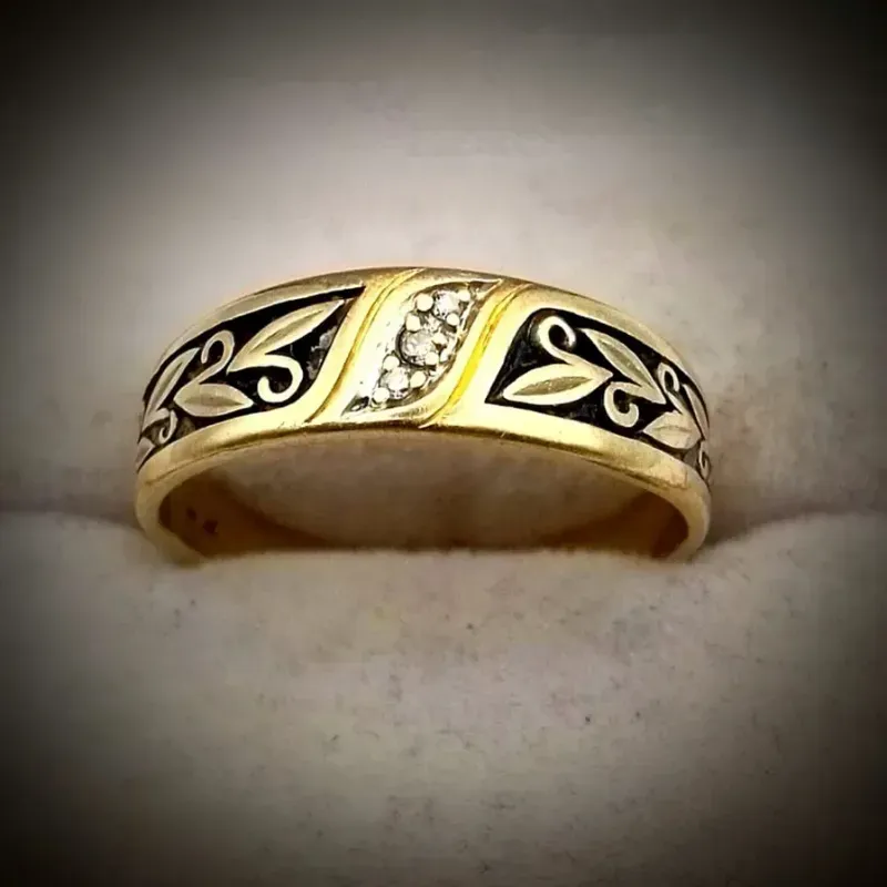 Alianza de Compromiso 14K Brillantes Con Ramos Por Ambos Lados es talla 9 3)4