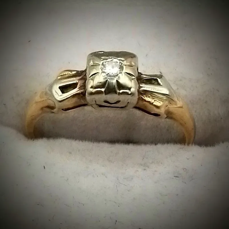 Anillo Original 14K con brillo que forman un cuadrado es talla 6